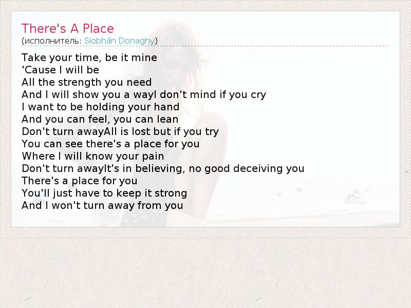 А как ты думаешь, о чем песня "There's A Place" ?