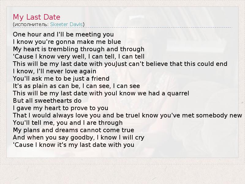А как ты думаешь, о чем песня "My Last Date" ?