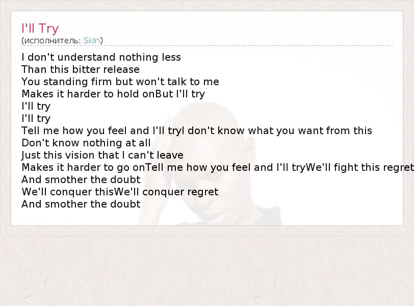 А как ты думаешь, о чем песня "I'll Try" ?