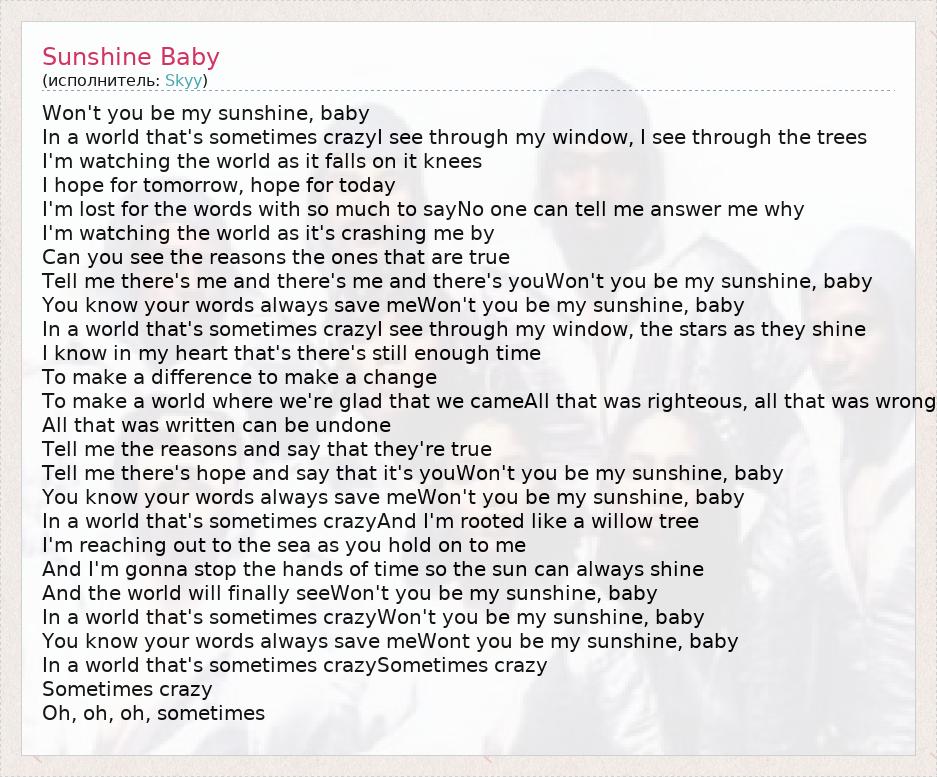 In a world that's sometimes crazyWon't you be my sunshine, baby