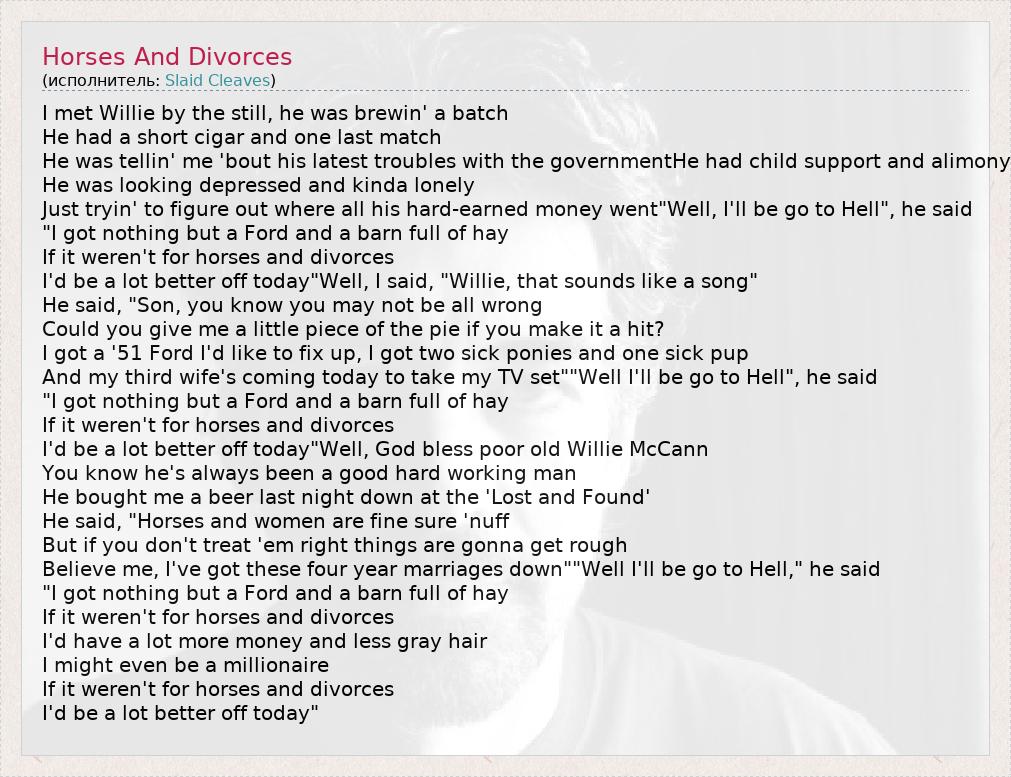 А как ты думаешь, о чем песня "Horses And Divorces" ?