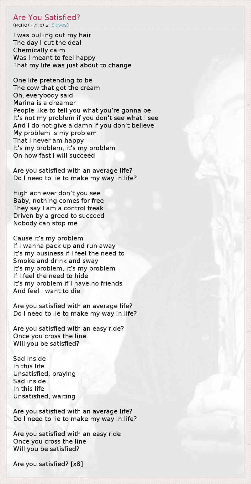 А как ты думаешь, о чем песня "Are You Satisfied?" ?
