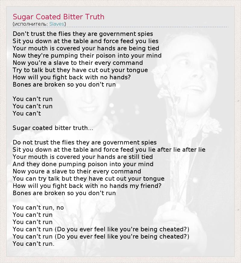 А как ты думаешь, о чем песня "Sugar Coated Bitter Truth" ?