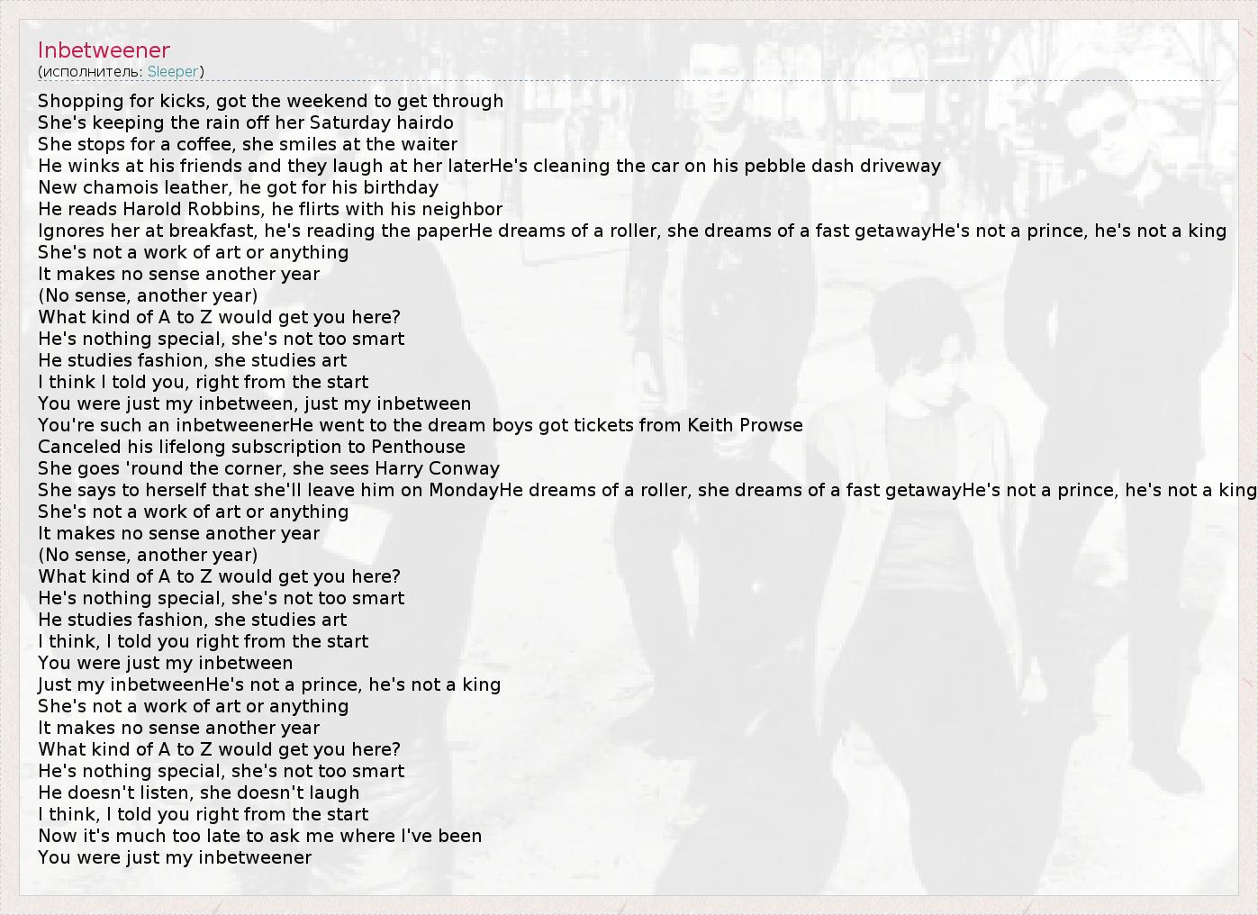 А как ты думаешь, о чем песня "Inbetweener" ?
