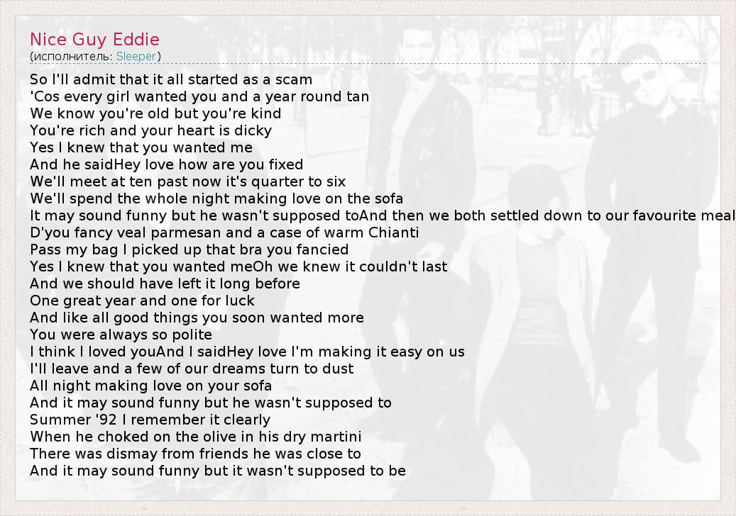 А как ты думаешь, о чем песня "Nice Guy Eddie" ?