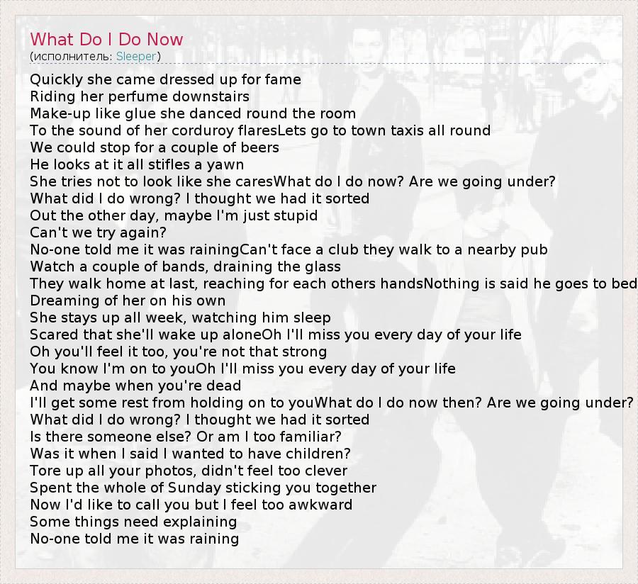 А как ты думаешь, о чем песня "What Do I Do Now" ?