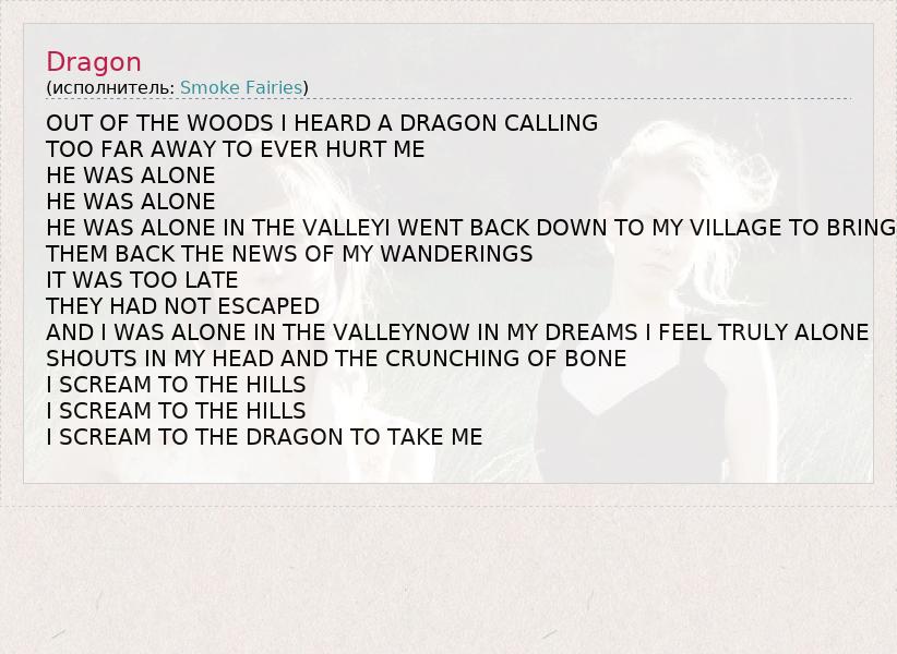 OUT OF THE WOODS I HEARD A DRAGON CALLING