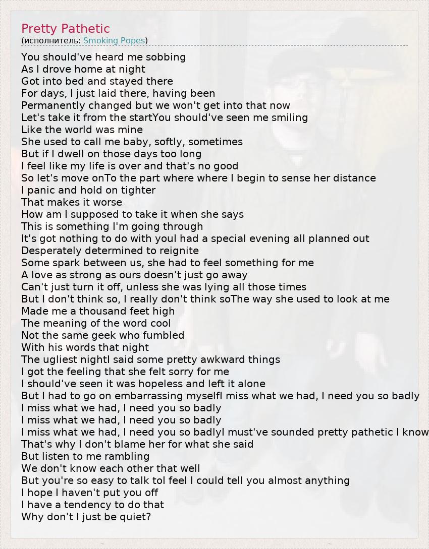 А как ты думаешь, о чем песня "Pretty Pathetic" ?