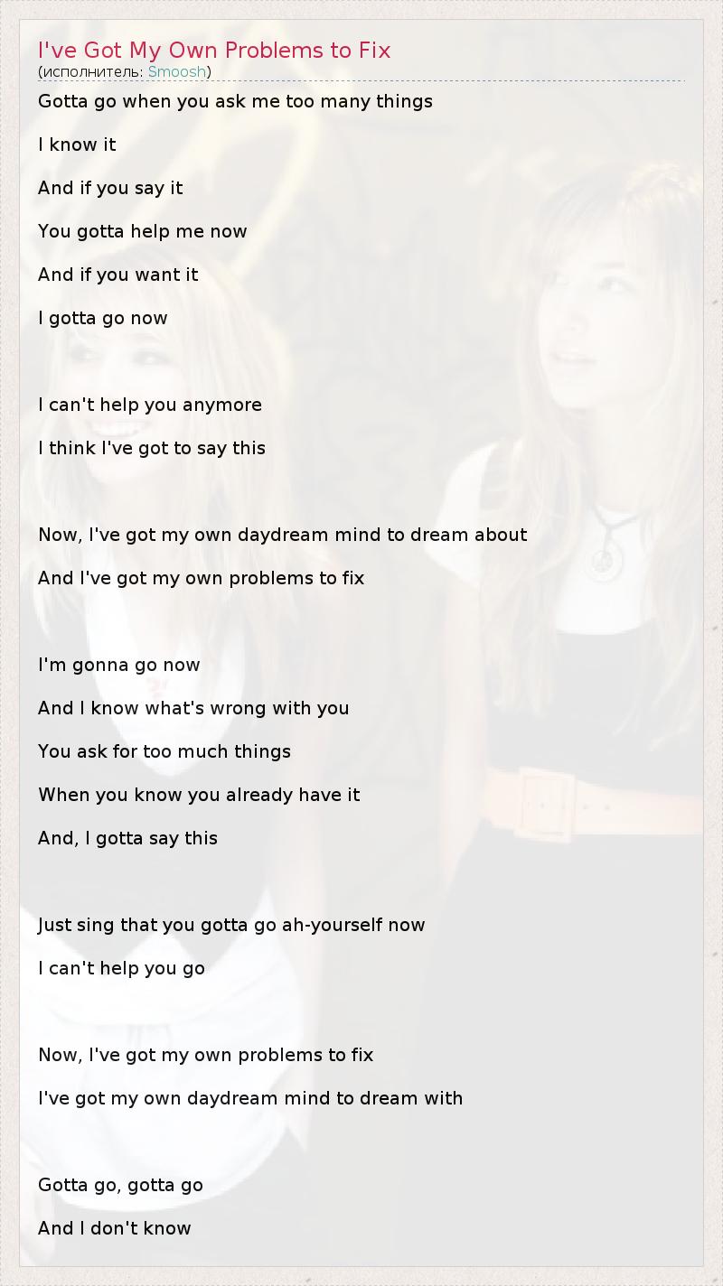 А как ты думаешь, о чем песня "I've Got My Own Problems to Fix" ?