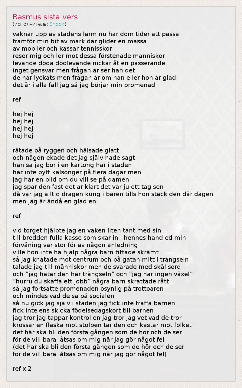 А как ты думаешь, о чем песня "Rasmus sista vers" ?