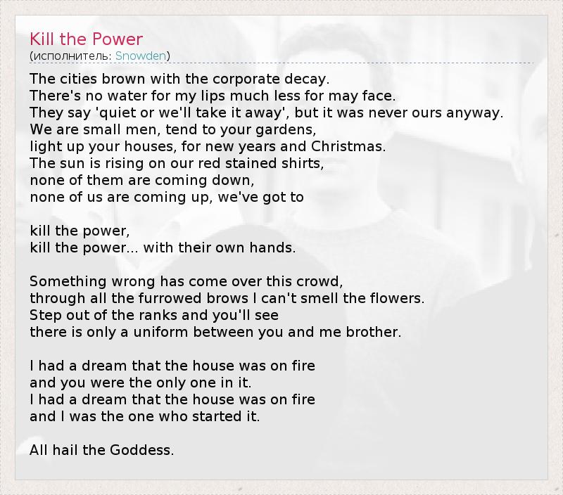А как ты думаешь, о чем песня "Kill the Power" ?