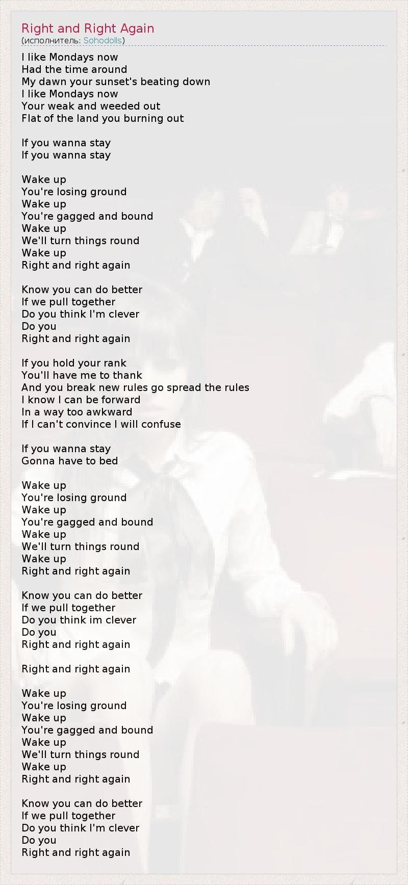 А как ты думаешь, о чем песня "Right and Right Again" ?