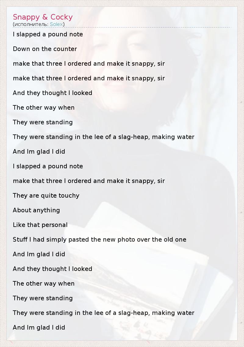 А как ты думаешь, о чем песня "Snappy & Cocky" ?