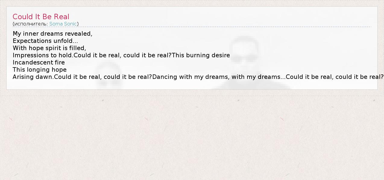 А как ты думаешь, о чем песня "Could It Be Real" ?