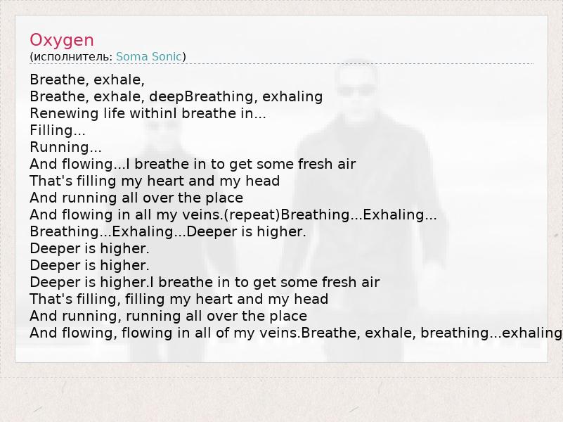And flowing in all my veins.(repeat)Breathing...Exhaling...