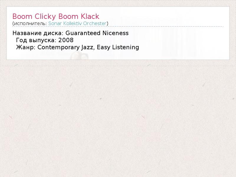 А как ты думаешь, о чем песня "Boom Clicky Boom Klack" ?