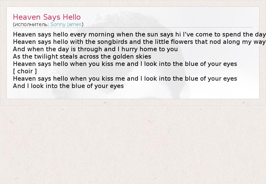 А как ты думаешь, о чем песня "Heaven Says Hello" ?