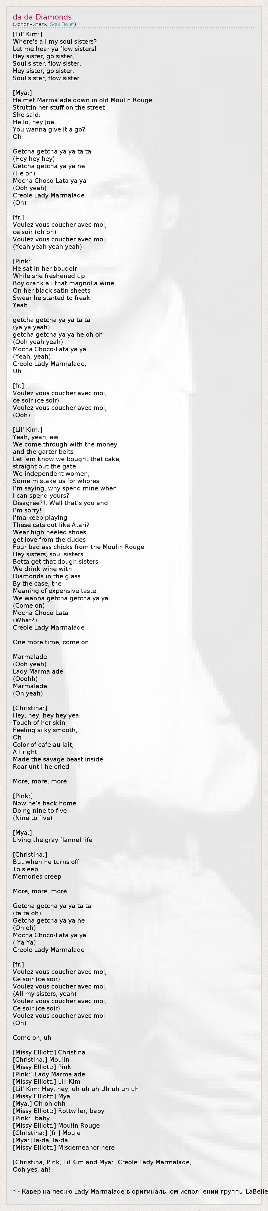 [Christina, Pink, Lil’ Kim и Mya:] Креолка Леди Мармелад