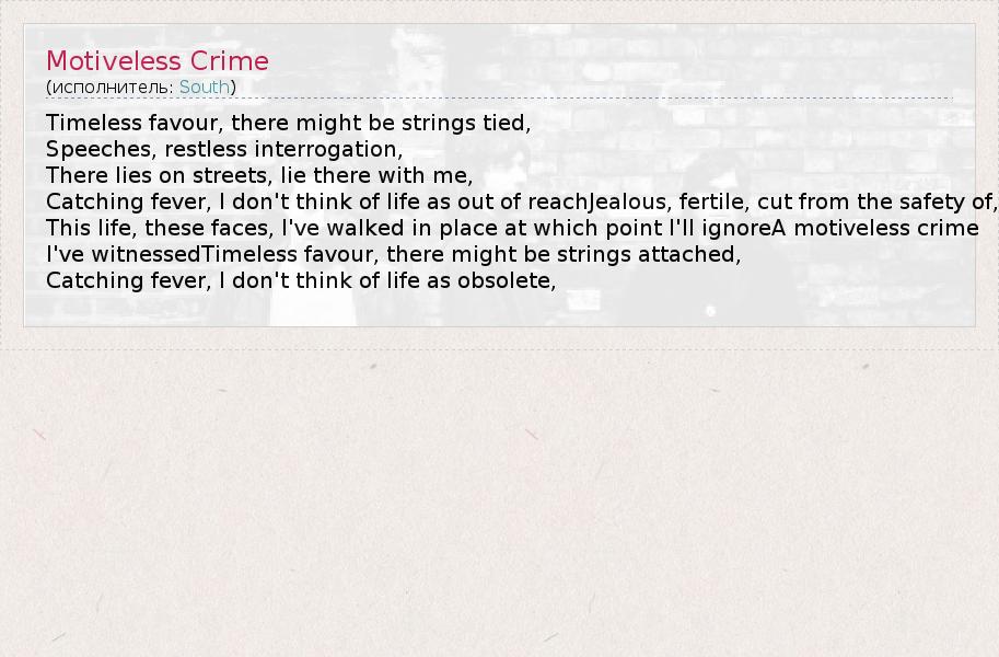 А как ты думаешь, о чем песня "Motiveless Crime" ?