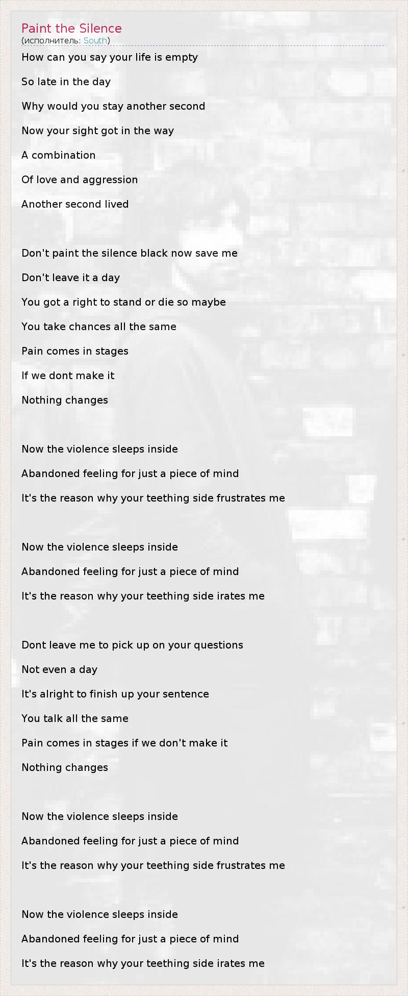 А как ты думаешь, о чем песня "Paint the Silence" ?