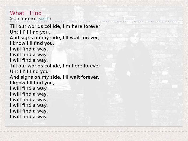 А как ты думаешь, о чем песня "What I Find" ?