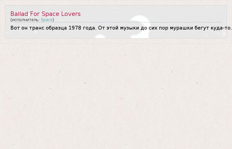 А как ты думаешь, о чем песня "Ballad For Space Lovers" ?