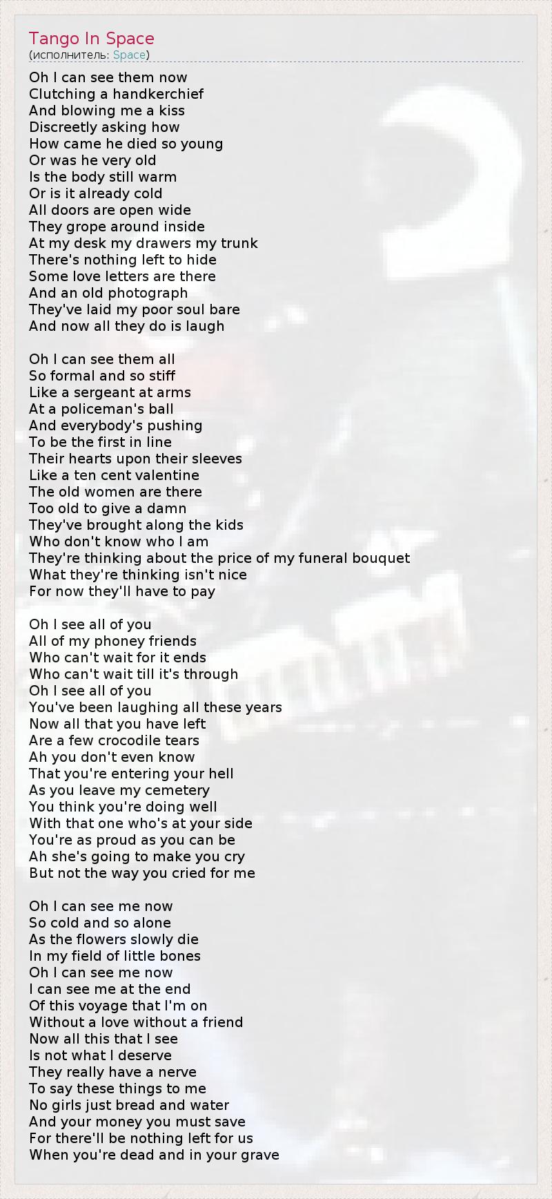 А как ты думаешь, о чем песня "Tango In Space" ?