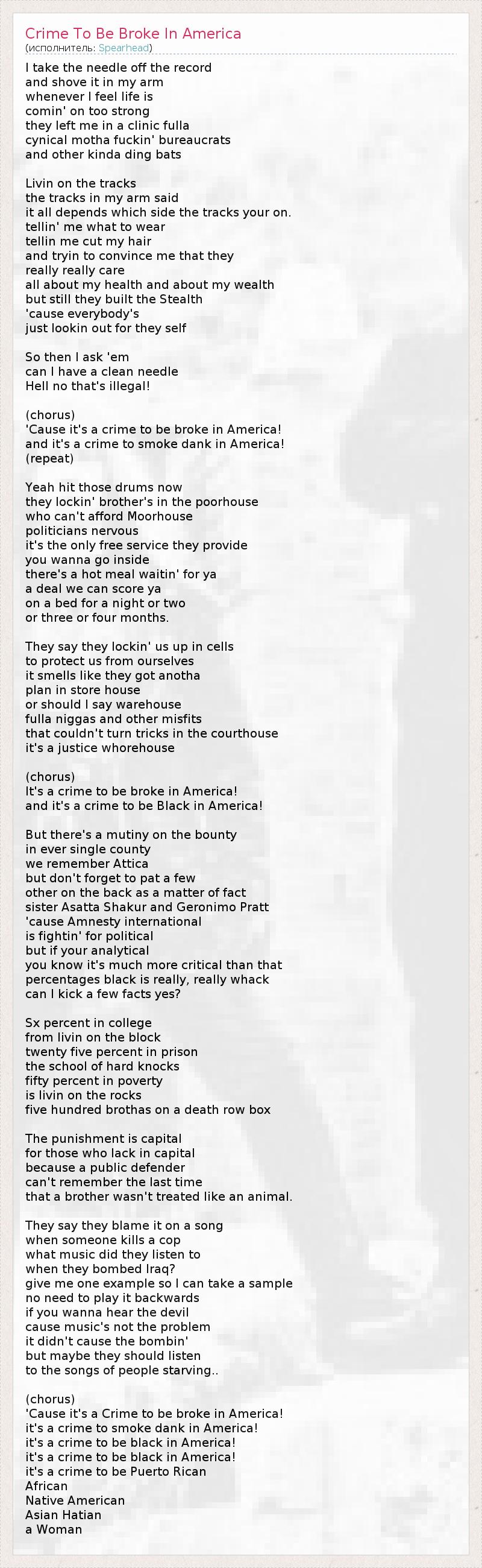 А как ты думаешь, о чем песня "Crime To Be Broke In America" ?