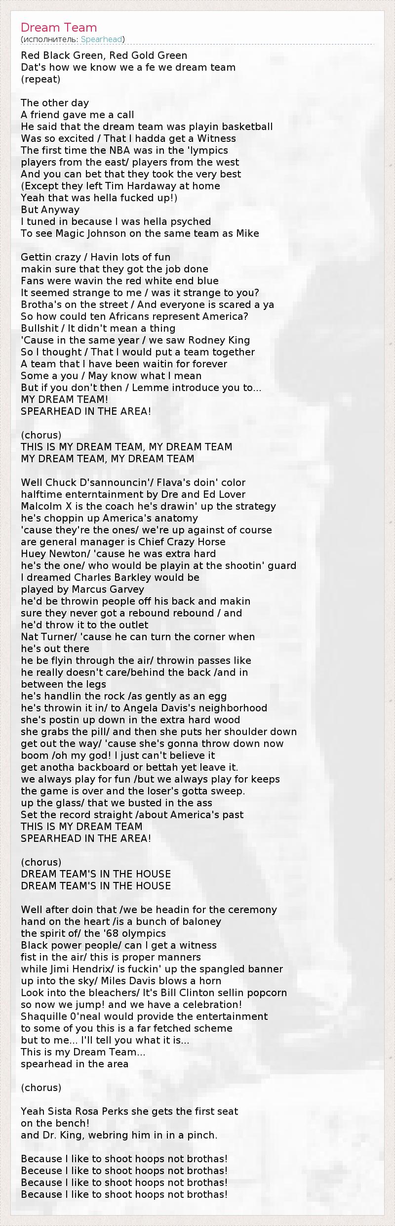 А как ты думаешь, о чем песня "Dream Team" ?