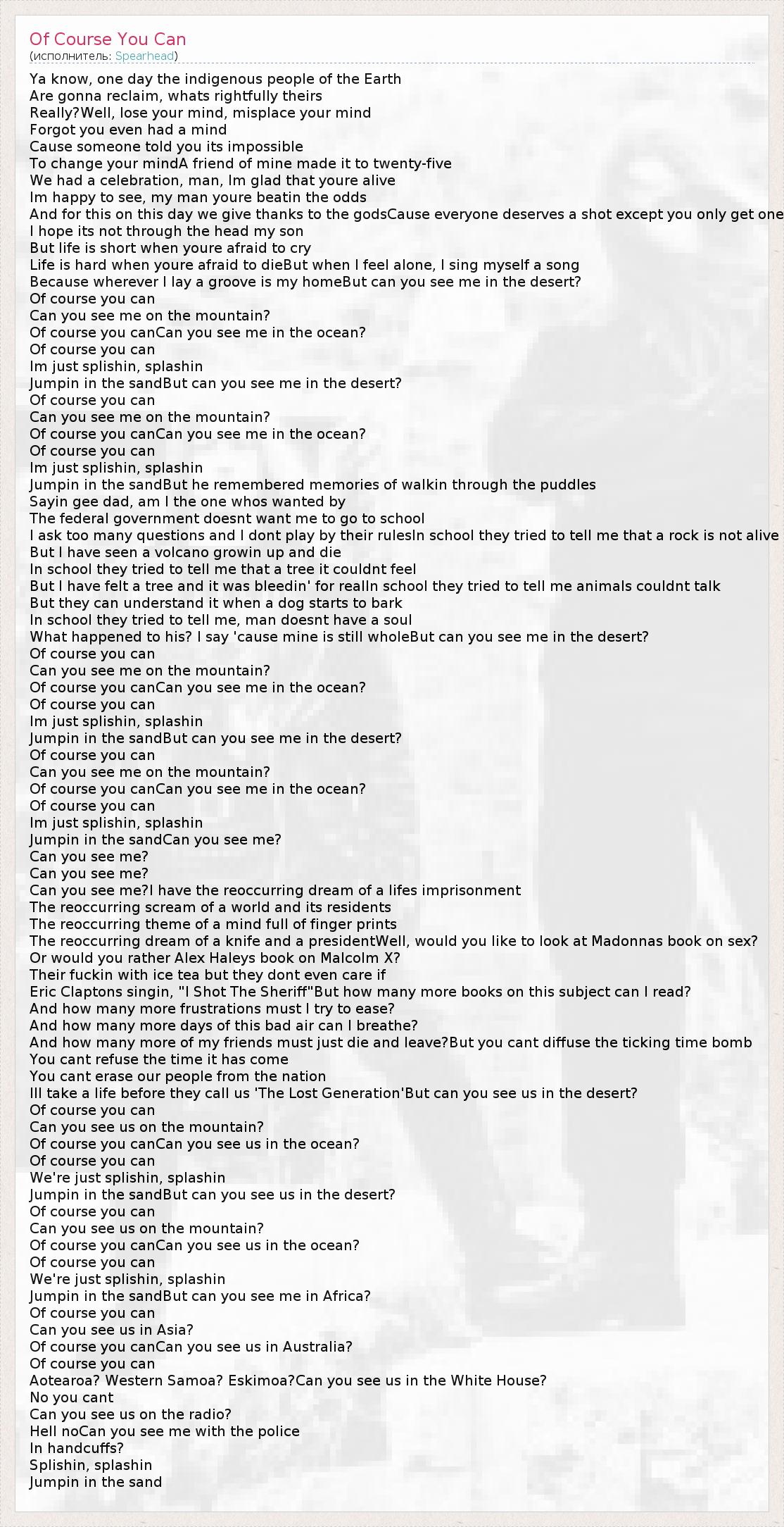 А как ты думаешь, о чем песня "Of Course You Can" ?
