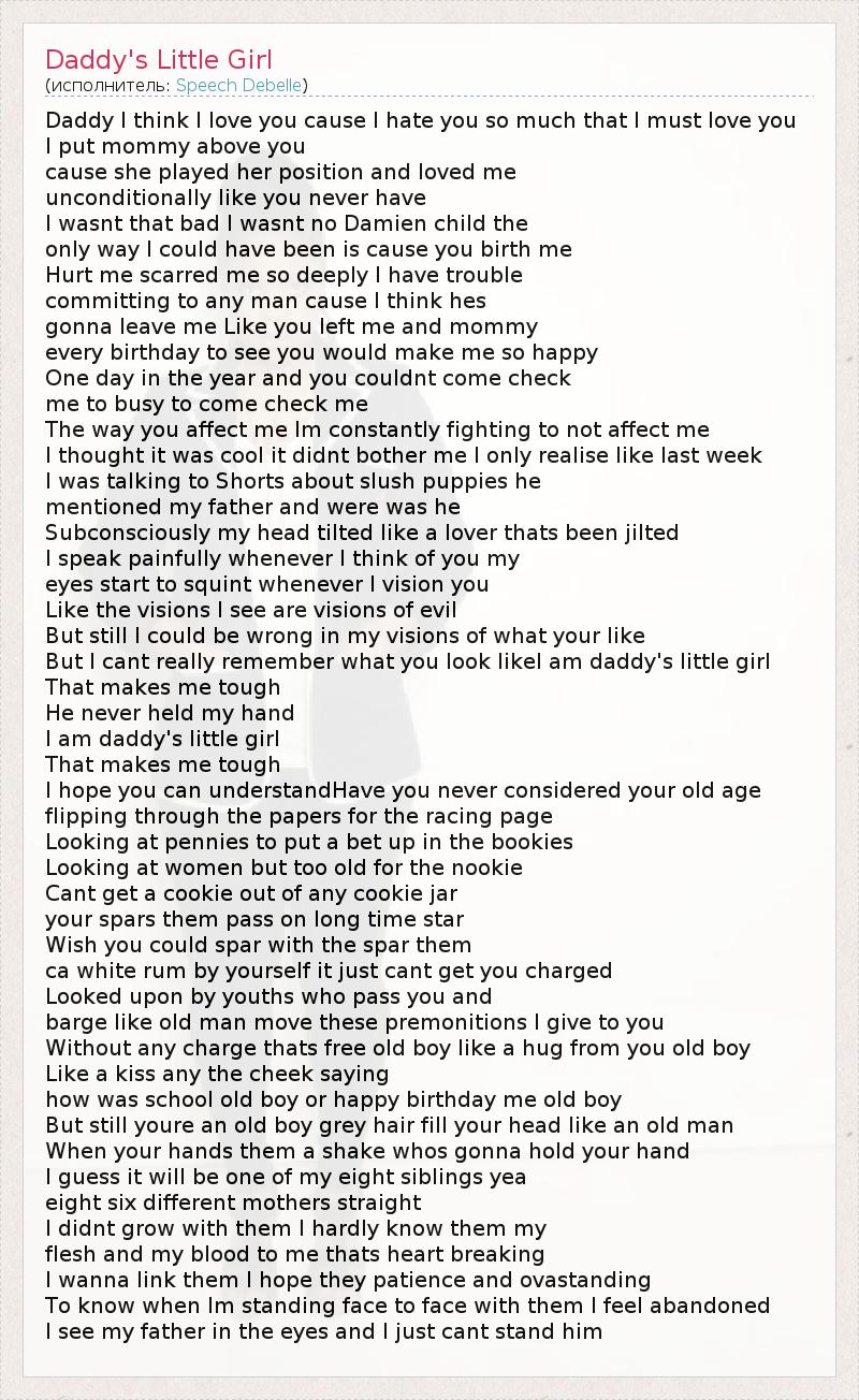 А как ты думаешь, о чем песня "Daddy's Little Girl" ?