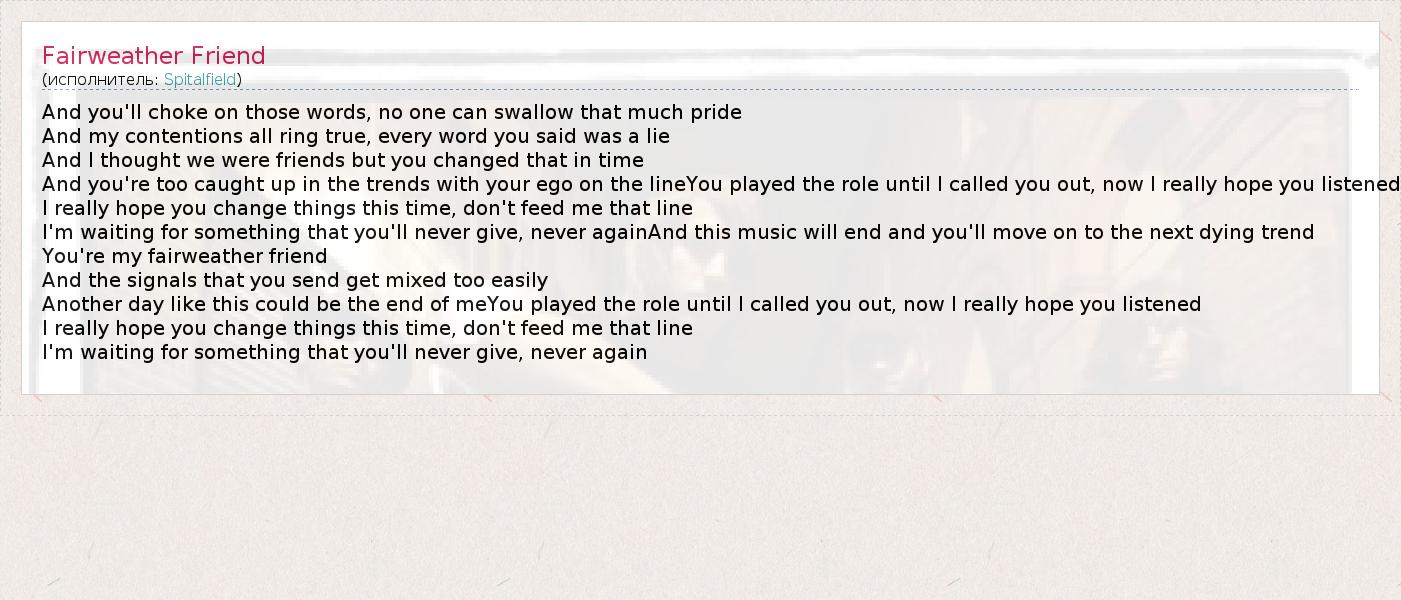 А как ты думаешь, о чем песня "Fairweather Friend" ?