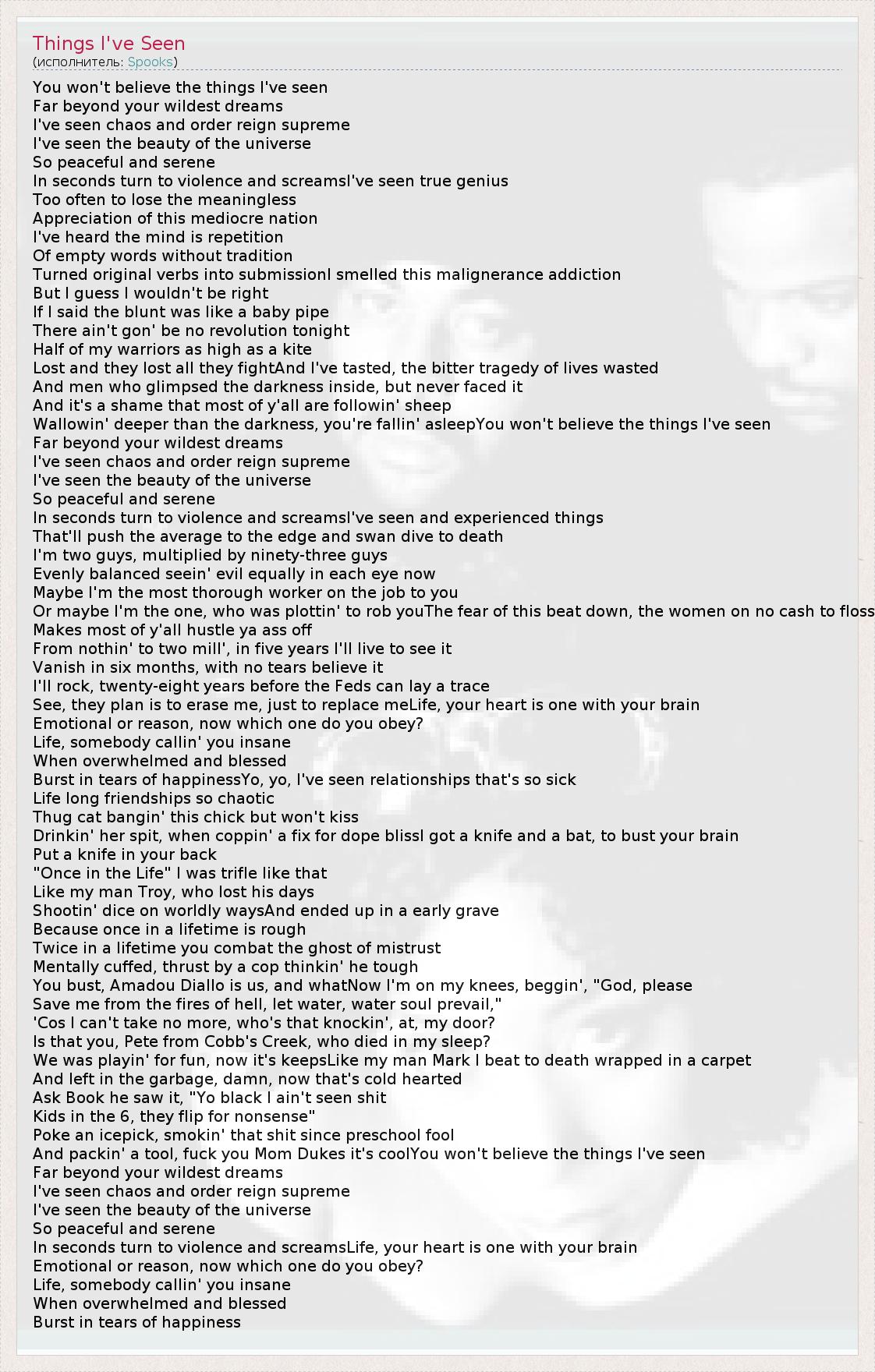 А как ты думаешь, о чем песня "Things I've Seen" ?
