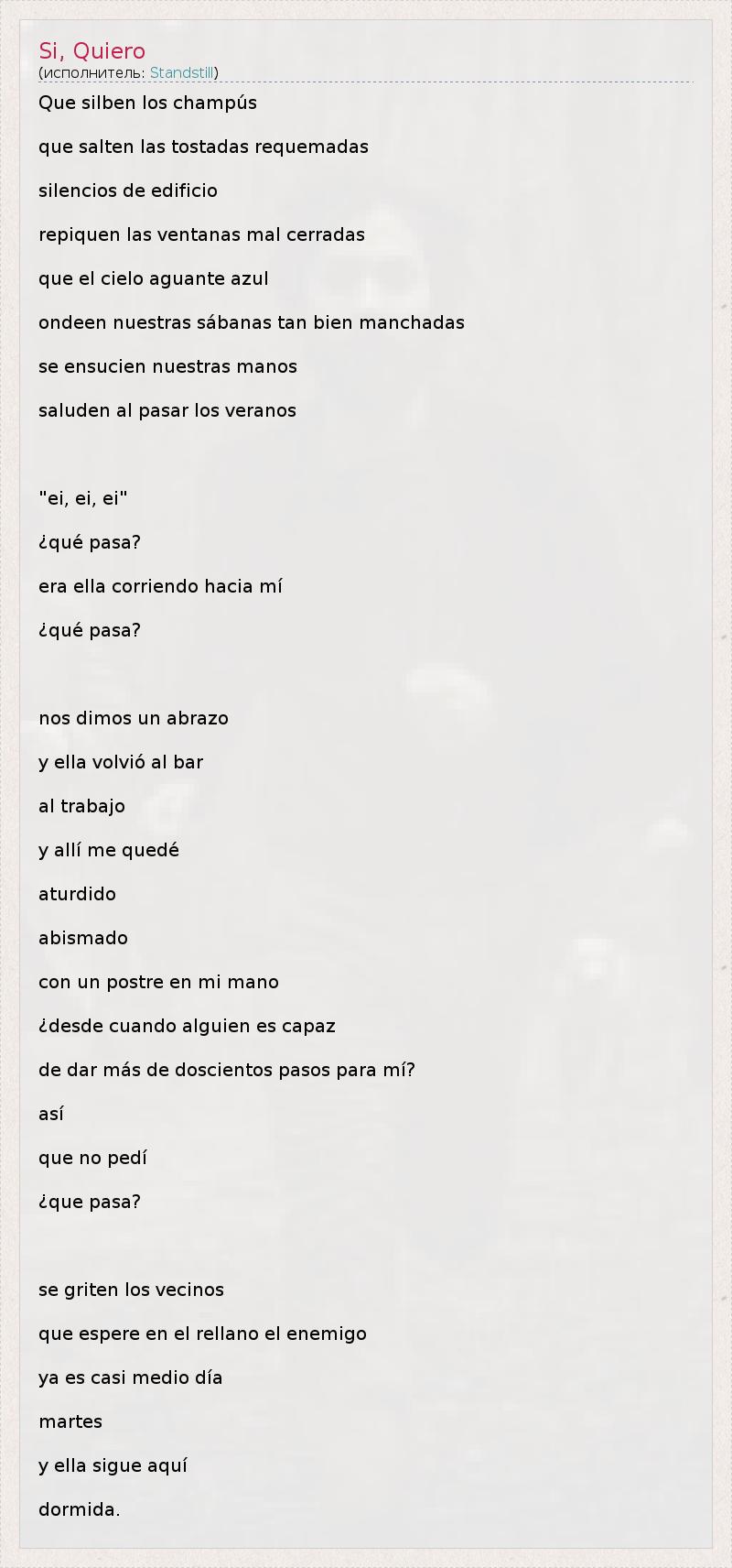 А как ты думаешь, о чем песня "Si, Quiero" ?