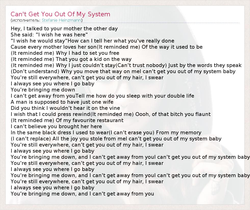 А как ты думаешь, о чем песня "Can't Get You Out Of My System" ?