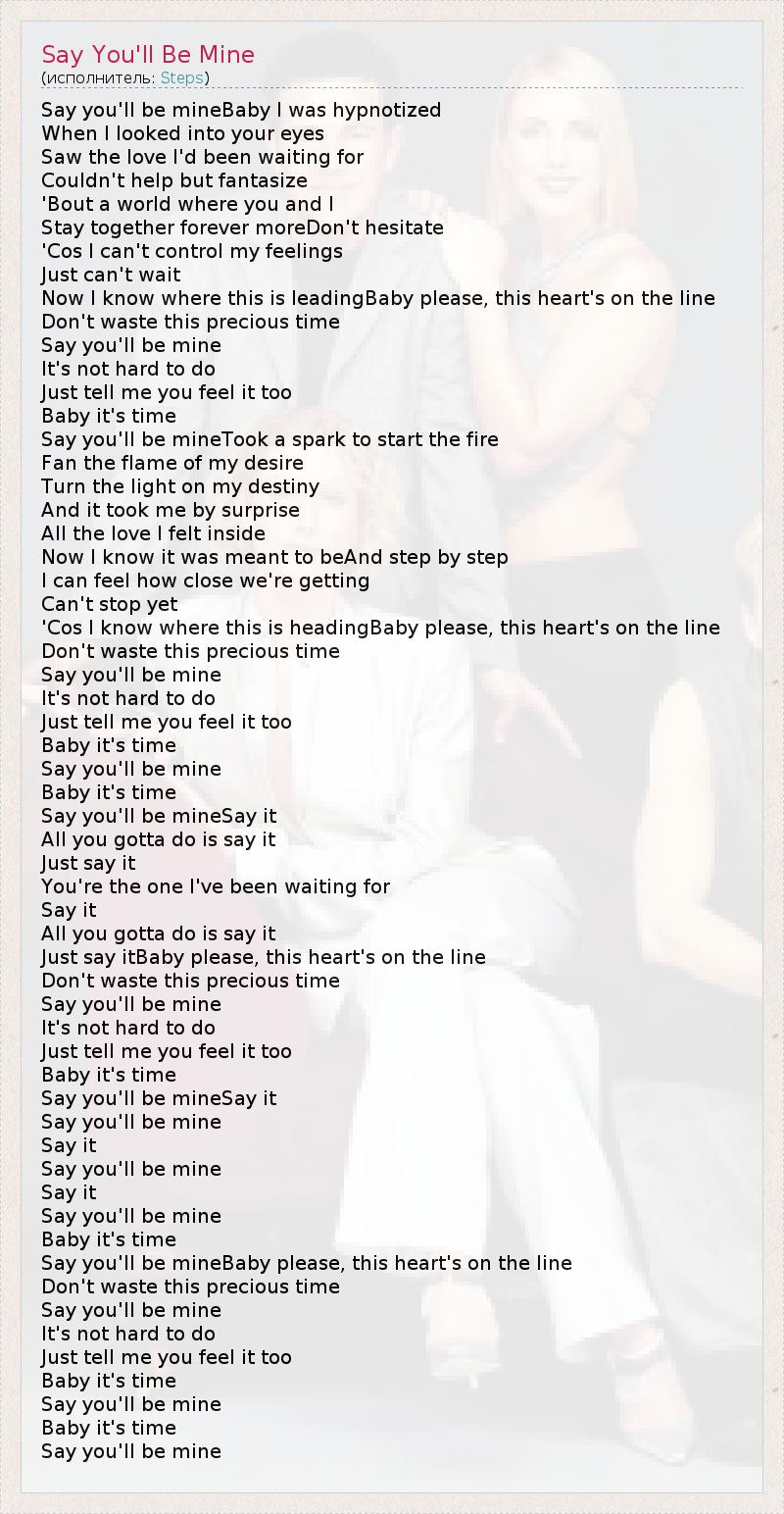 А как ты думаешь, о чем песня "Say You'll Be Mine" ?