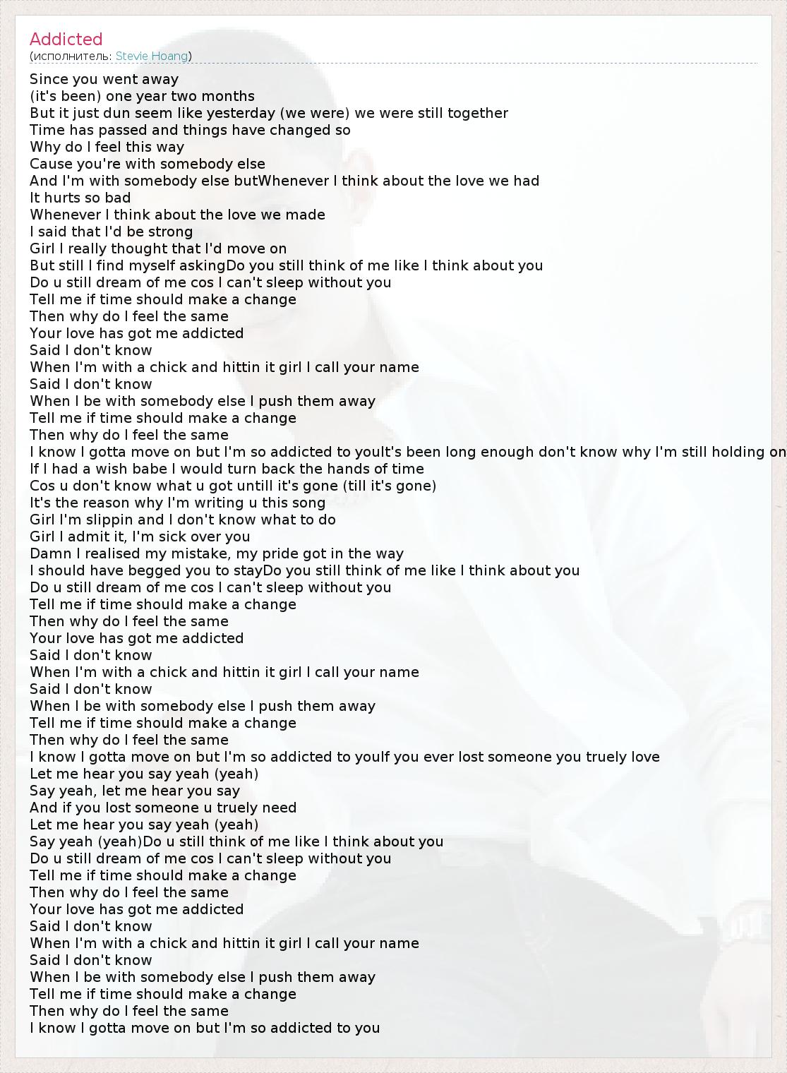 I know I gotta move on but I'm so addicted to youIf you ever lost someone you truely love