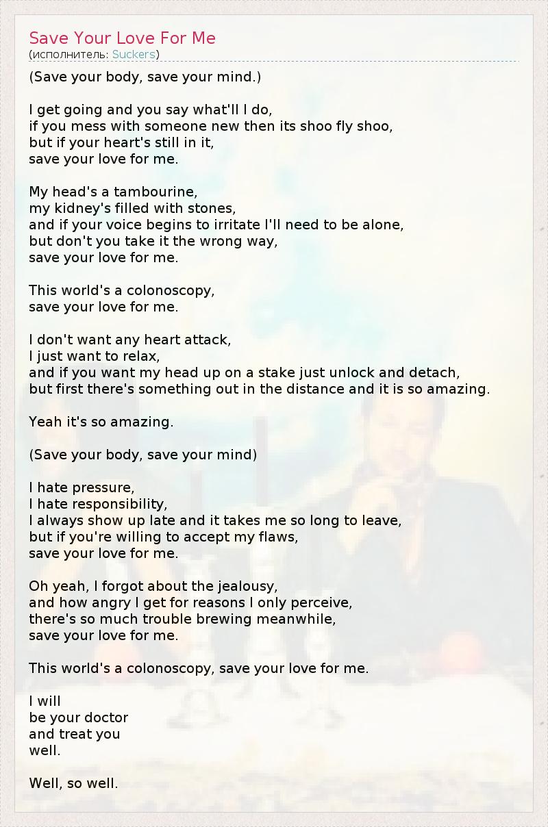 А как ты думаешь, о чем песня "Save Your Love For Me" ?