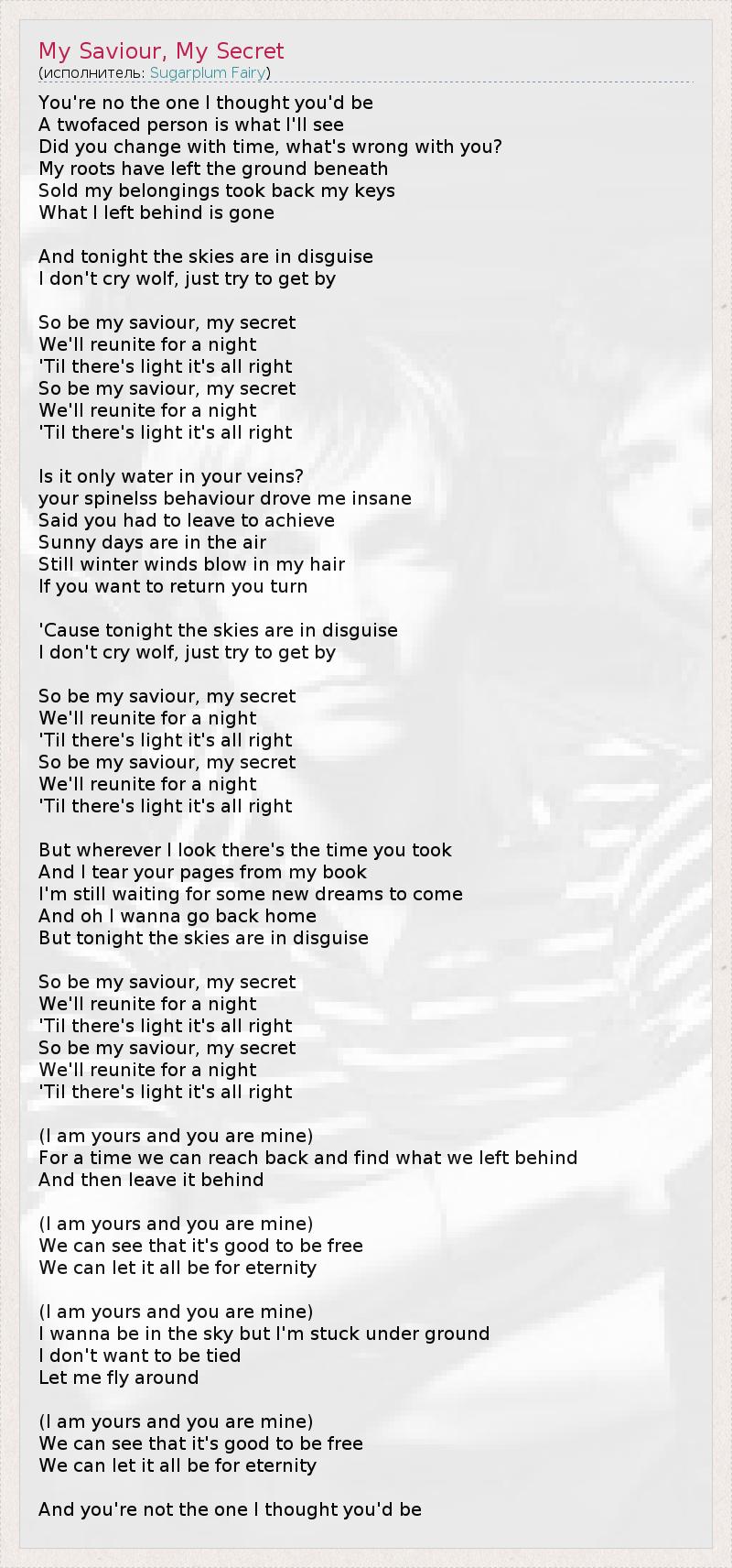 А как ты думаешь, о чем песня "My Saviour, My Secret" ?