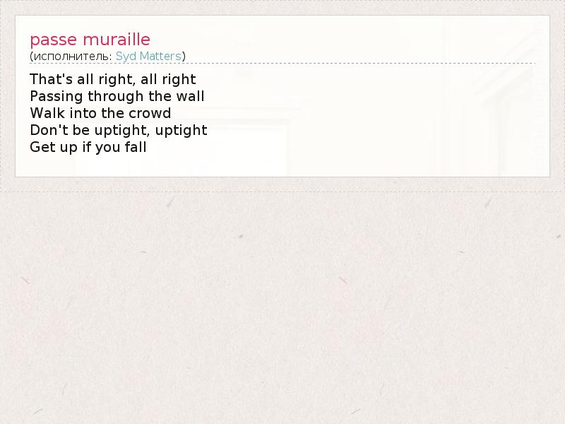 That's all right, all right Passing through the wall Walk into the crowd Don't be uptight, uptight Get up if you fall