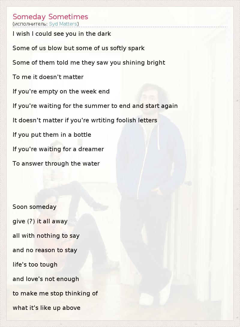 А как ты думаешь, о чем песня "Someday Sometimes" ?
