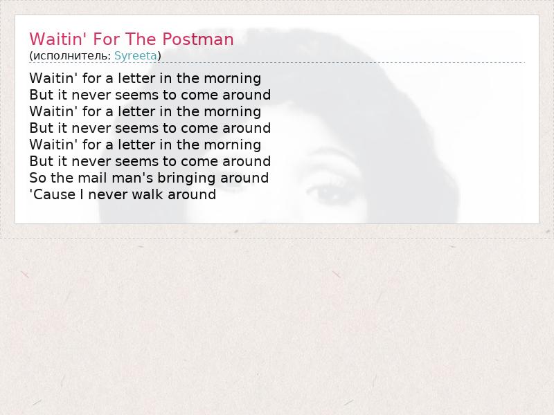 А как ты думаешь, о чем песня "Waitin' For The Postman" ?