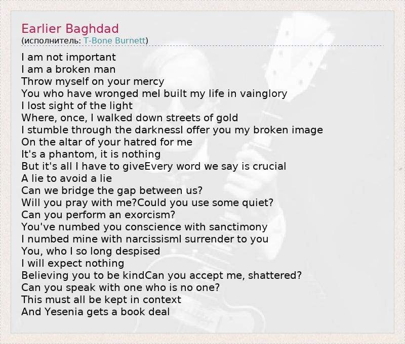 А как ты думаешь, о чем песня "Earlier Baghdad" ?