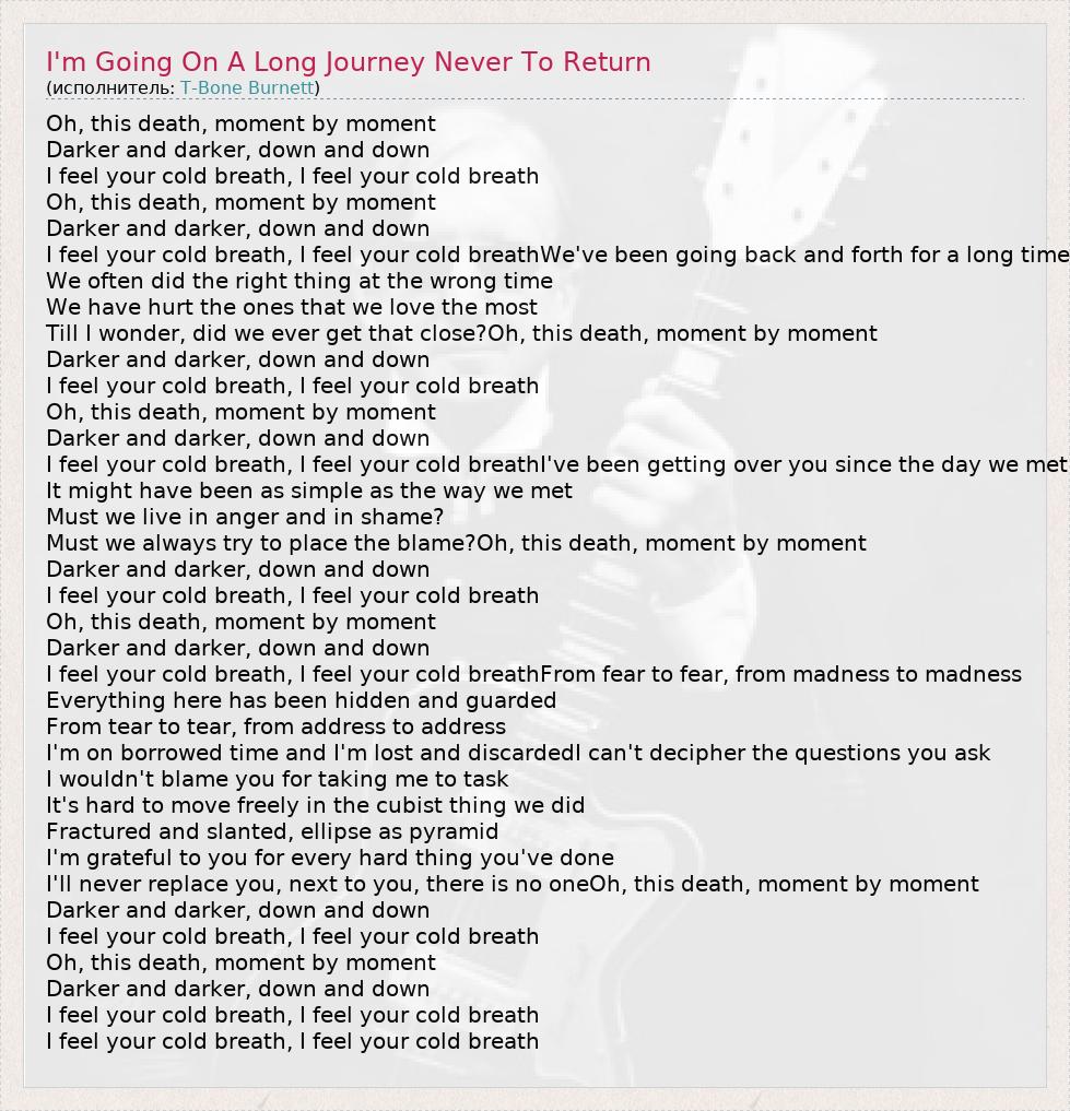 А как ты думаешь, о чем песня "I'm Going On A Long Journey Never To Return" ?