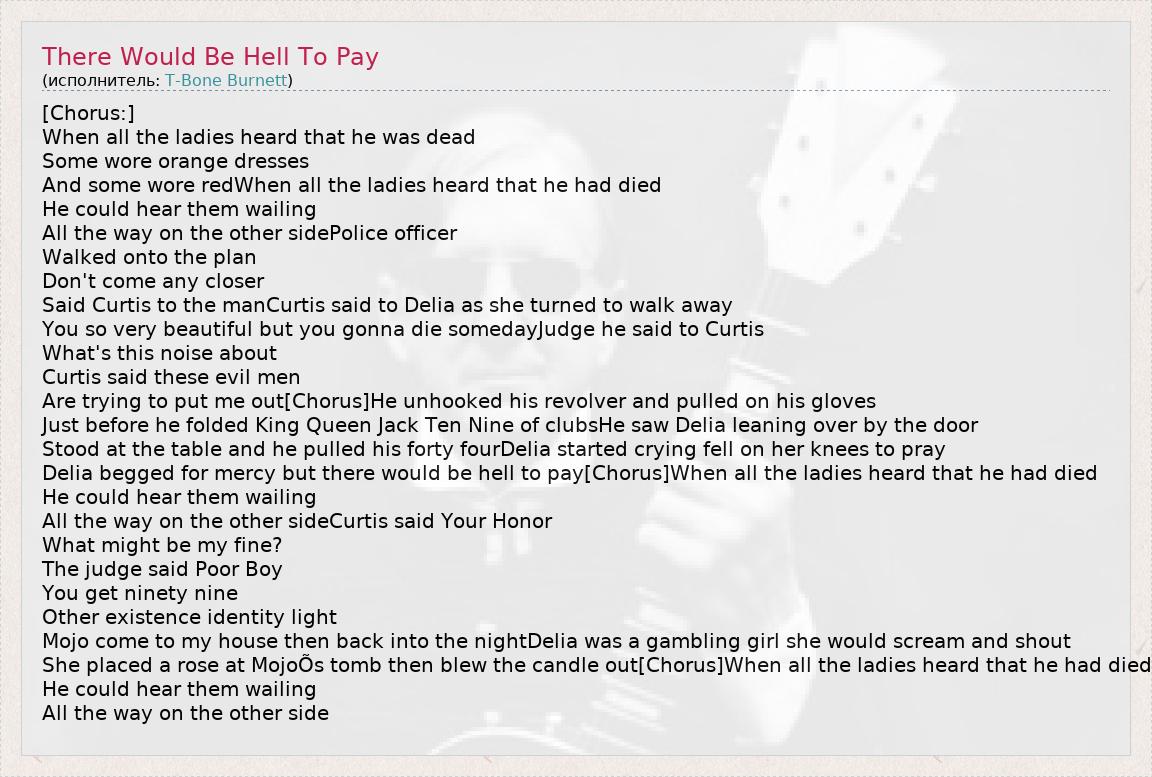 ГлавнаяИсполнителиT-Bone BurnettThere Would Be Hell To Pay