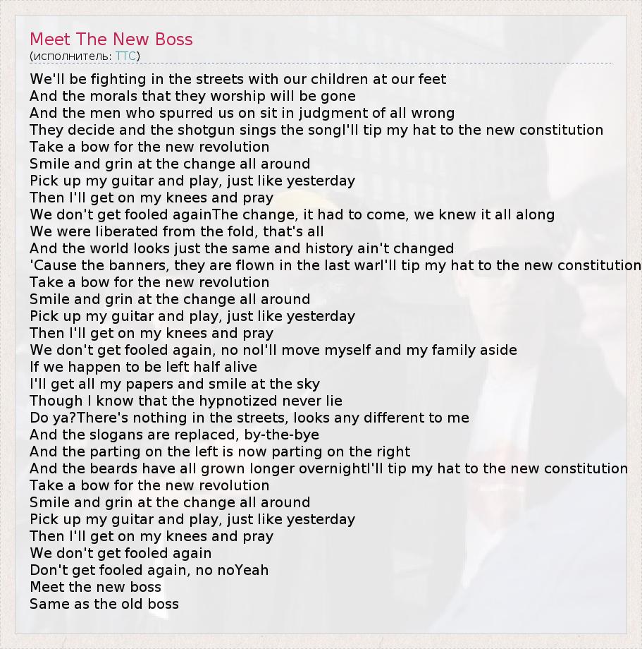 А как ты думаешь, о чем песня "Meet The New Boss" ?
