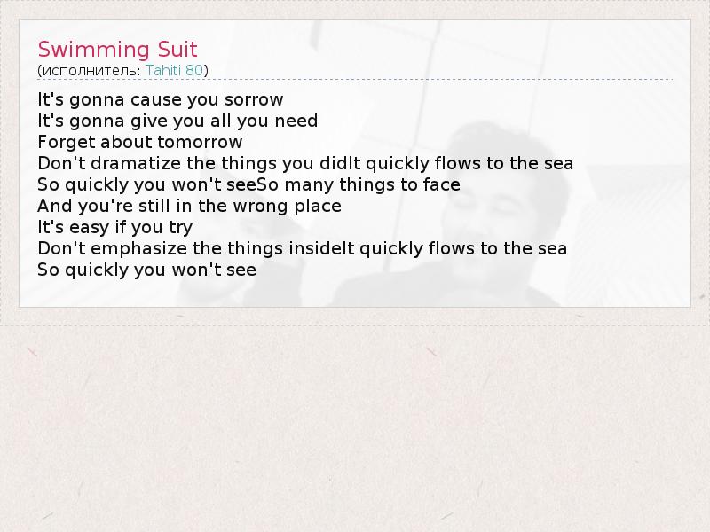 А как ты думаешь, о чем песня "Swimming Suit" ?