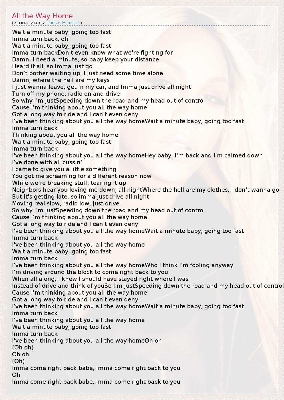 I've been thinking about you all the way homeWait a minute baby, going too fast