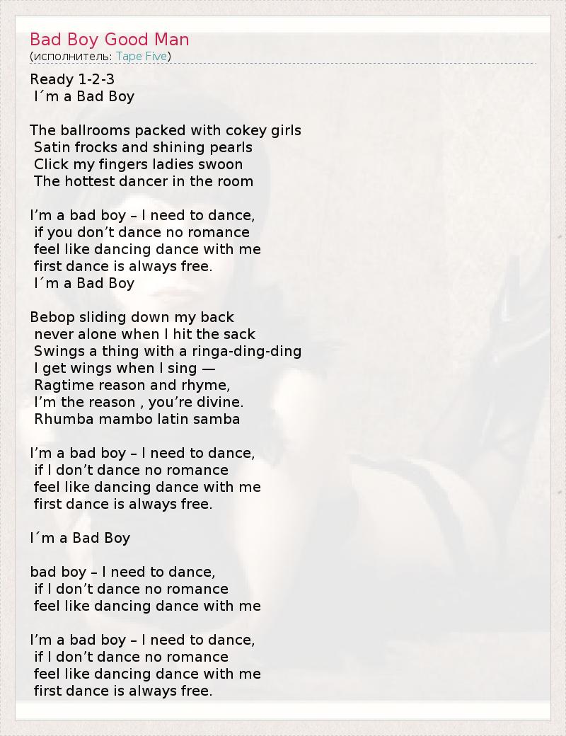 А как ты думаешь, о чем песня "Bad Boy Good Man" ?