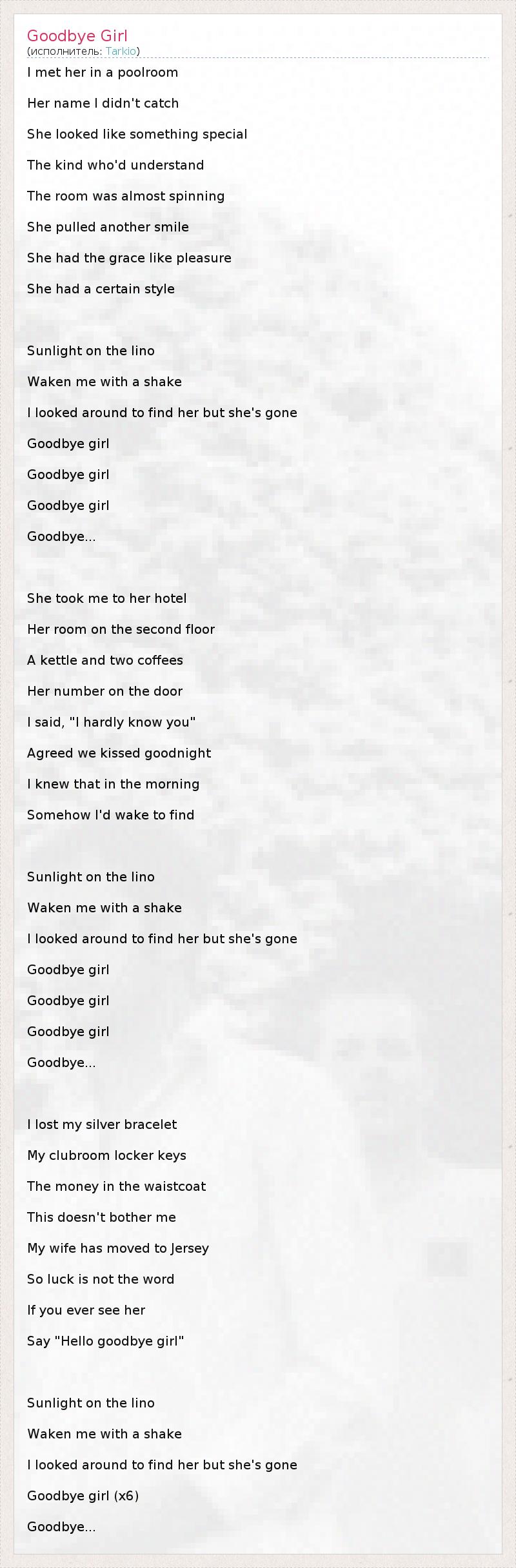 А как ты думаешь, о чем песня "Goodbye Girl" ?